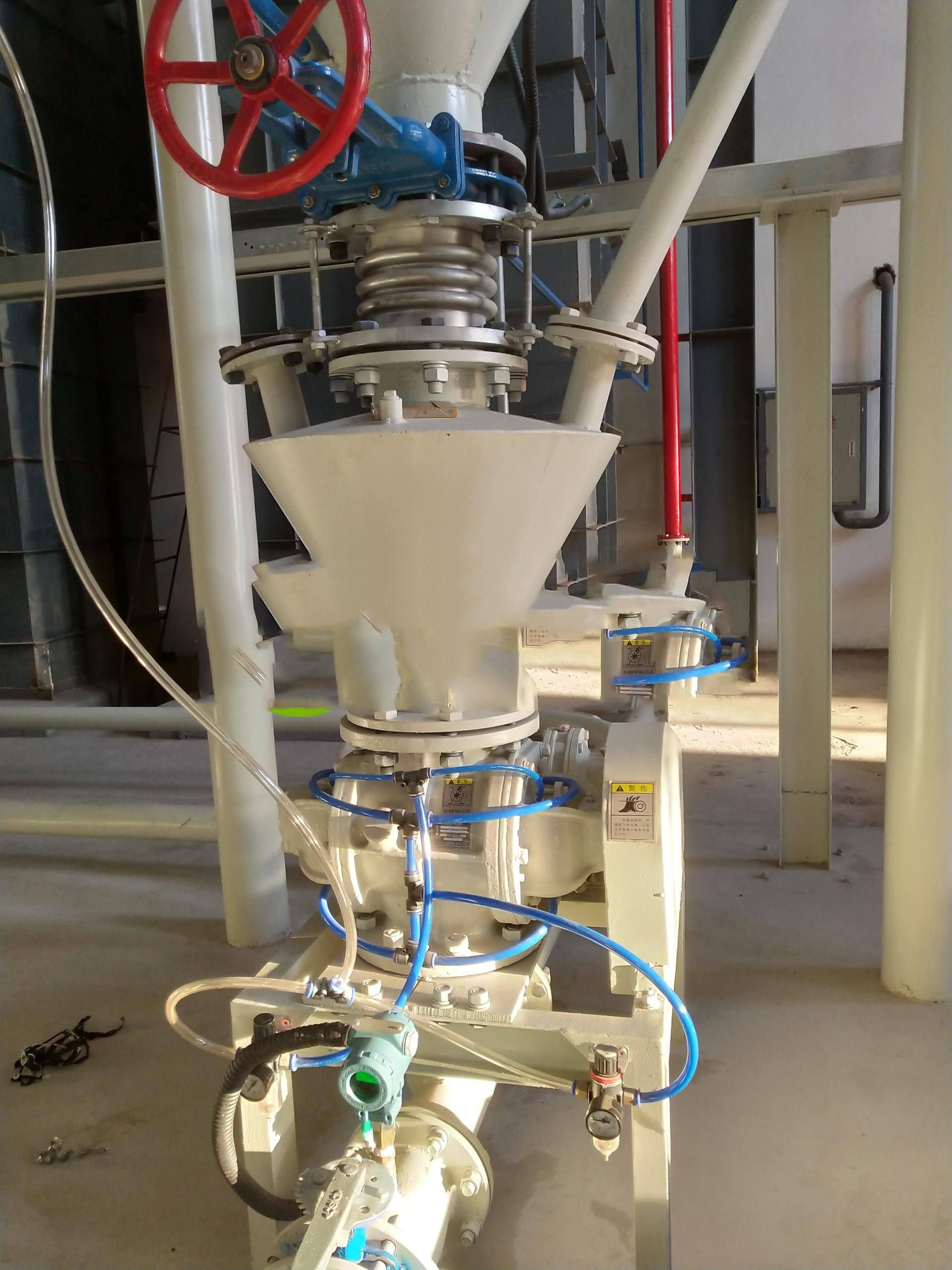 旋轉(zhuǎn)供料器的卸料量影響著氣力輸送的輸送量,在這個項(xiàng)目中我們甚至?xí)ㄟ^旋轉(zhuǎn)供料器的減容來達(dá)到減少輸送量。