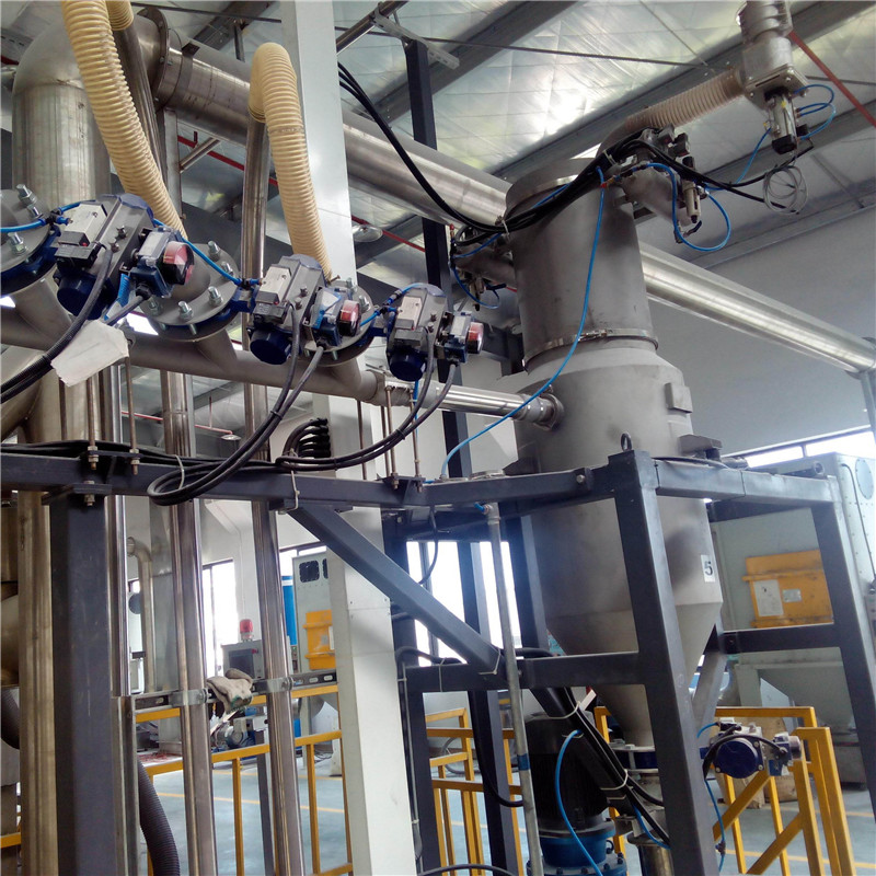 多組份吸料計(jì)量稱,主要由截氣閥、過(guò)濾器、進(jìn)料閥組、稱重模塊、脈沖反沖裝置、卸料閥、儲(chǔ)料倉(cāng)等組成。多組份吸料計(jì)量采用負(fù)壓平衡技術(shù),通過(guò)真空負(fù)壓將物料吸到儲(chǔ)料倉(cāng)內(nèi),在吸料的同時(shí)對(duì)物料進(jìn)行計(jì)量,根據(jù)物料(粉末)的流動(dòng)性,可增設(shè)破拱裝置以助流,可以最多20個(gè)管道同時(shí)接入該計(jì)量稱進(jìn)行計(jì)量。精度:±200g或±3‰