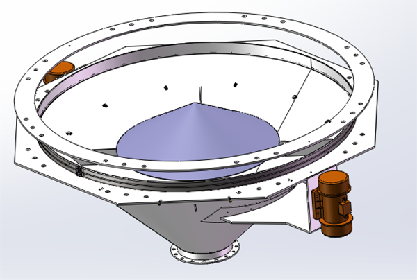 活化料斗由本體、蓋帽組件、彈簧組件、軟連接、法蘭和振動(dòng)電機(jī)等組成。一般安裝在料倉底部,起破拱、助流、防止物料架橋的作用;適用于易架橋的物料、粉體物料或流動(dòng)性較差的物料。